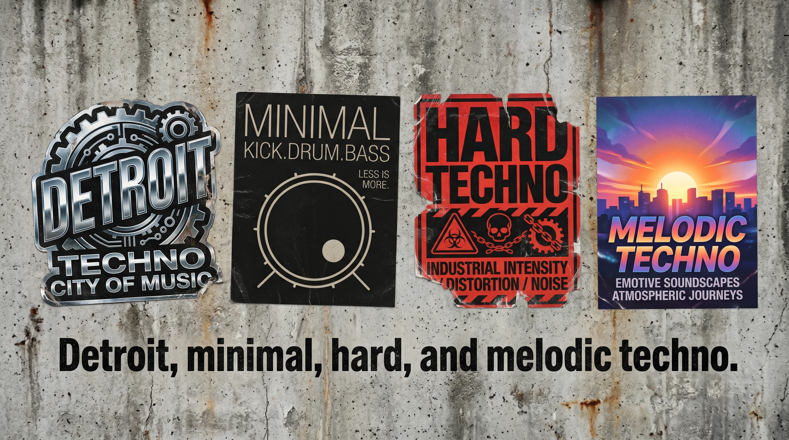 اختر النغمة: Detroit techno بجذور soul‑machine، minimal techno بحلقات متفرقة وتصميم صوت مدروس، hard/industrial techno بإيقاعات أسرع، أو melodic techno بأقواس سينث عاطفية على طريقة Camelphat/Tale Of Us.