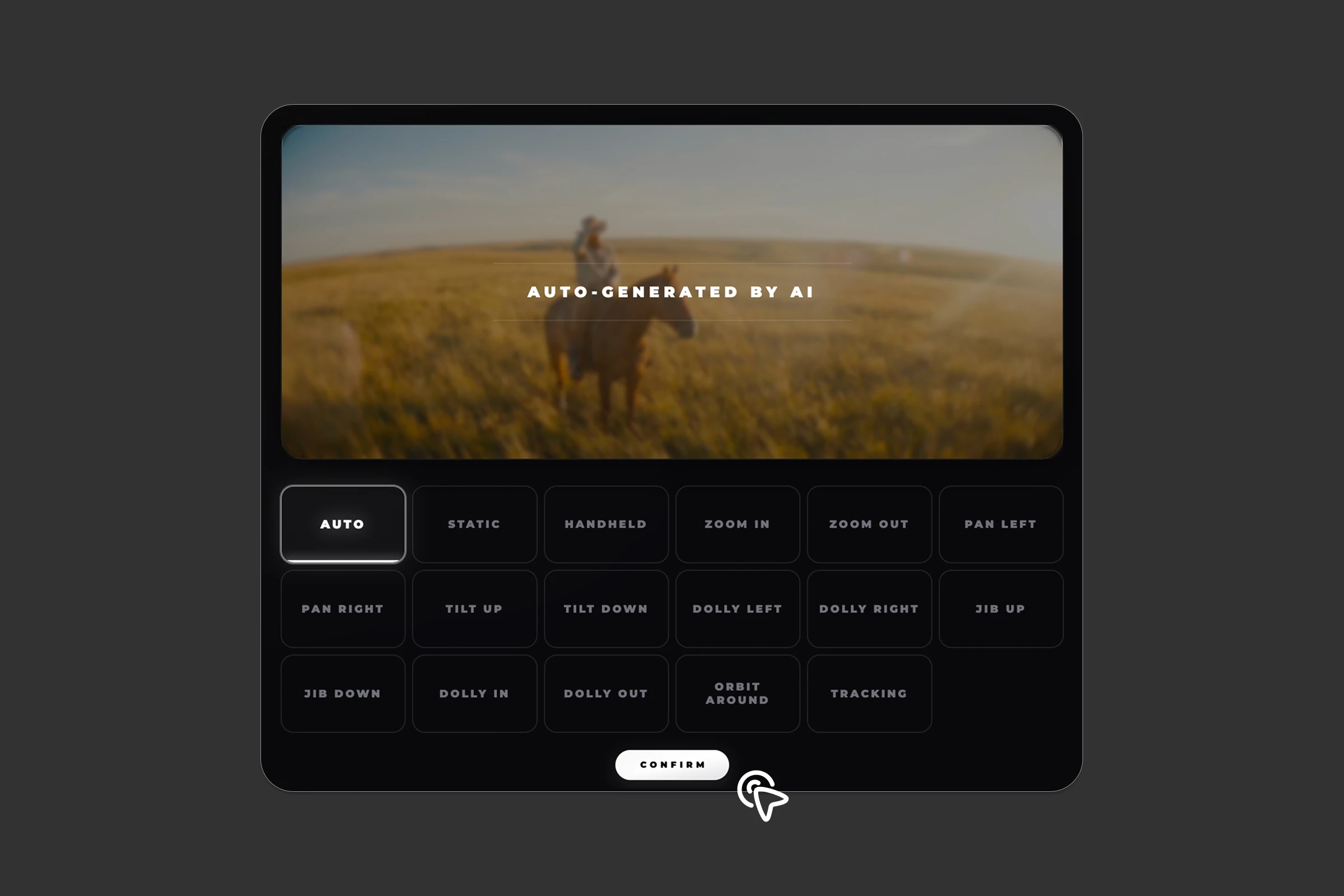 Describe how the scene should move and select from professional camera movement presets. From subtle motion to dynamic cinematic shots, Cuty handles the technical complexity for you.